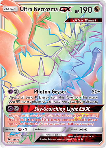 "Forbidden Light" is the sixth main expansion of the Pokémon Trading Card Game's Sun & Moon series, released in English on May 4, 2018. The expansion features 131 standard cards and 15 secret cards, introducing new mechanics and Pokémon, including Ultra Necrozma-GX and notable cards like Dialga-GX and Greninja-GX, enhancing gameplay strategies with Generation VII Pokémon.