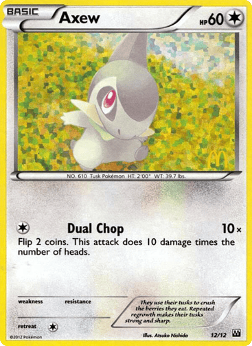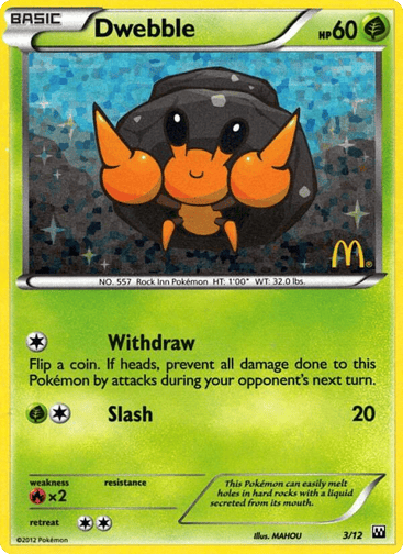 The McDonald's Collection 2012 is a special promotional set in the Pokémon Trading Card Game, featuring twelve reprinted cards from the Black & White, Emerging Powers, and Noble Victories expansions. These cards were included in Happy Meals at McDonald's from June to July 2012, accompanied by toys, and serve as collectible items within the TCG.