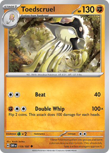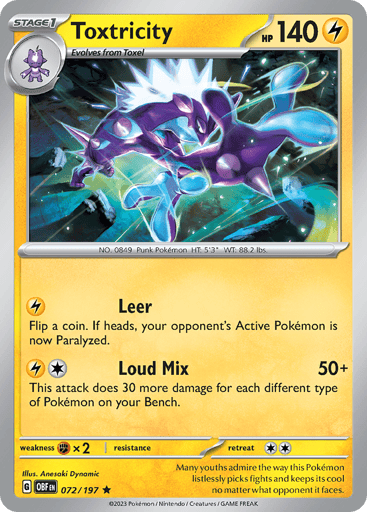 "Obsidian Flames" is an expansion for the Pokémon Trading Card Game that introduces powerful Pokémon ex with unique Abilities and attacks, including type-shifted Terastal Pokémon. Released on August 11th, it features cards like Toedscruel ex and Tyranitar ex, enhancing gameplay strategies with their significant damage potential and new types.