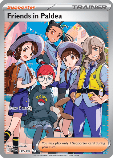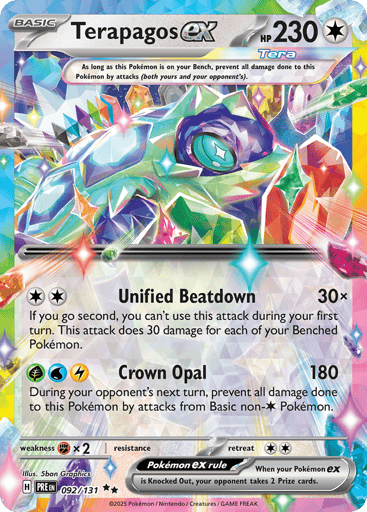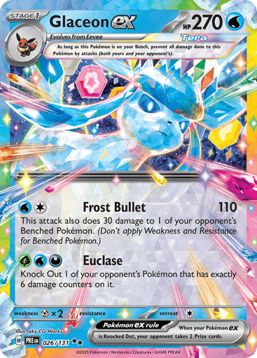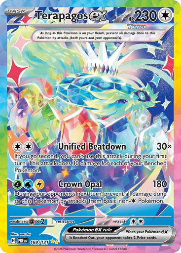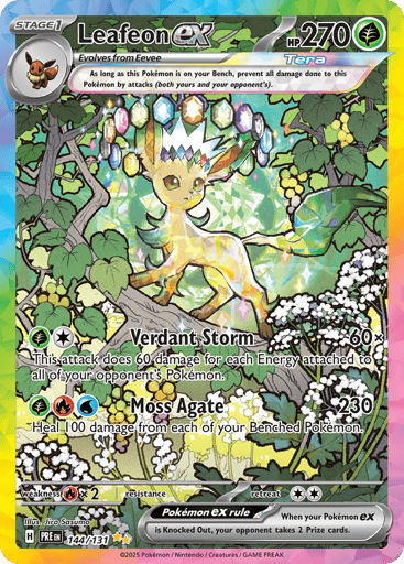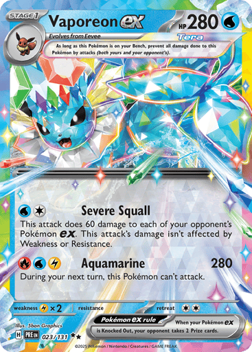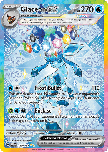 "Prismatic Evolutions" is the fourth special expansion in the Scarlet & Violet Series of the Pokémon Trading Card Game. This expansion features special illustration rare cards, including unique versions of Palafin ex and Eevee ex, and introduces new gameplay mechanics such as the Boosted Evolution Ability, allowing certain Pokémon to evolve disregarding standard rules.